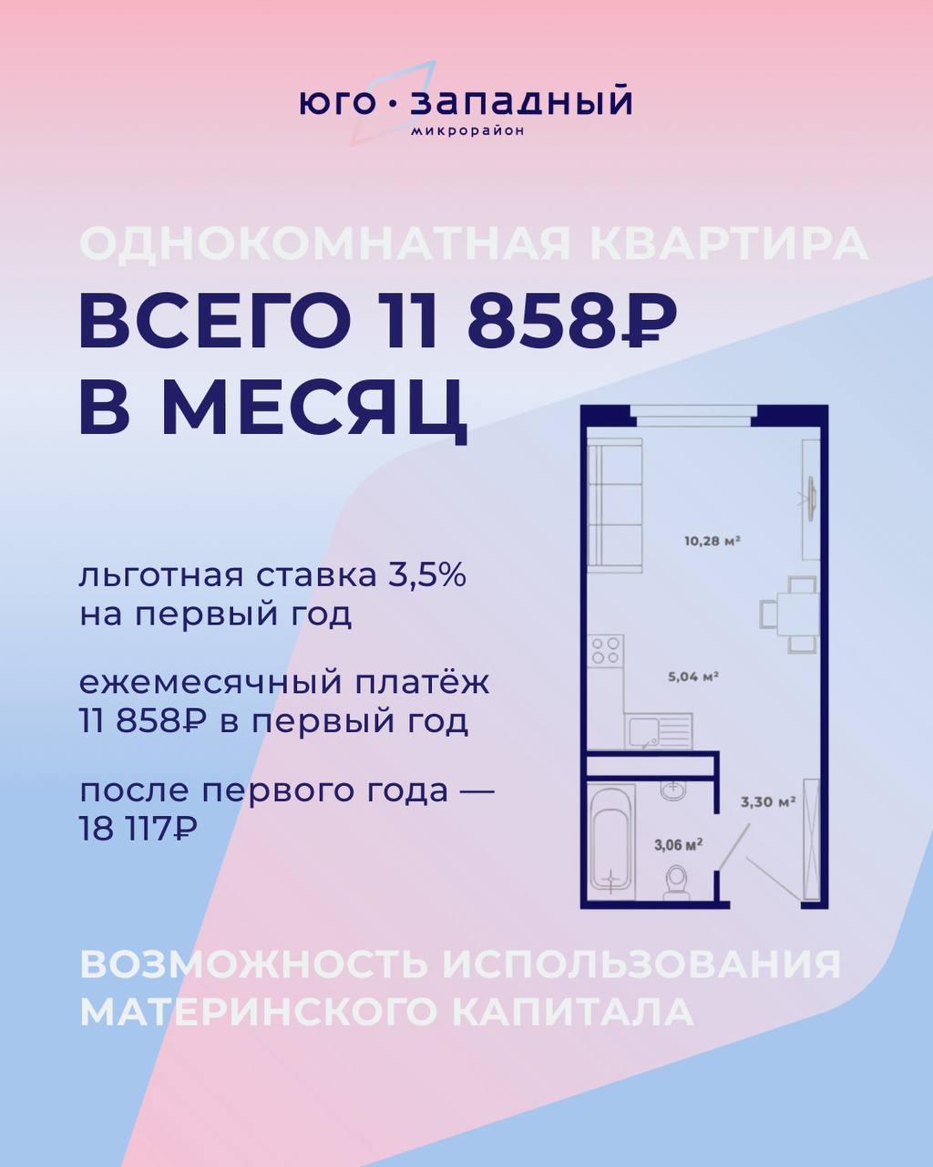 Представьте: теперь вы — собственник собственной квартиры 21,86 м² в микрорайоне Юго-Западный. И вот они ваши реальные цифры ⬇️